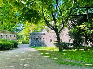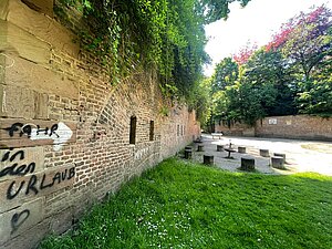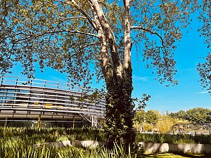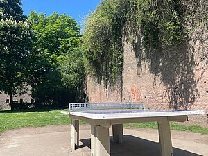 Der große Bouleplatz an der Mauenheimer Straße neben dem Alteberger Hof ist ganz von Bäumen umgeben. Hier ist es auch im Sommer angenehm schattig und immer ruhig. Viele Boulespieler finden hier gleichzeitig Platz, mit Getränken kann man sich am nahen Kiosk versorgen.