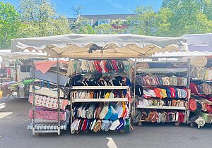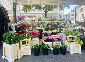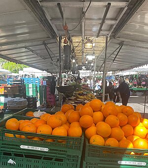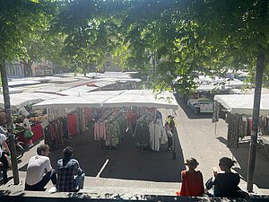 Wenn keine Marktstände aufgebaut sind, ist der Platz eine eher triste Betonfläche.