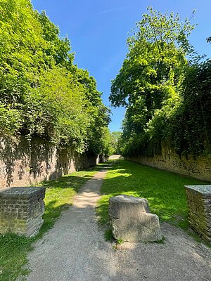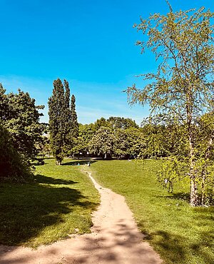 Das mit Bäumen umrandete Tälchen ist die ruhige grüne Oase in Nippes.