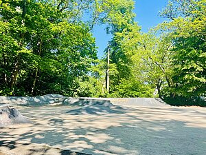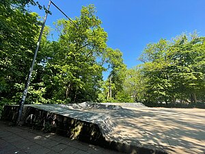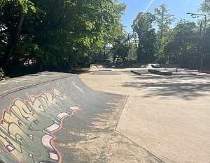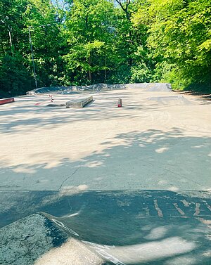 Der Skateplatz ist auch an heißen Sommertagen schön schattig, durch die vielen Bäume.