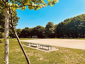Ein großer Park in dem ganz Nippes picknickt, spielt, skated und sport macht.